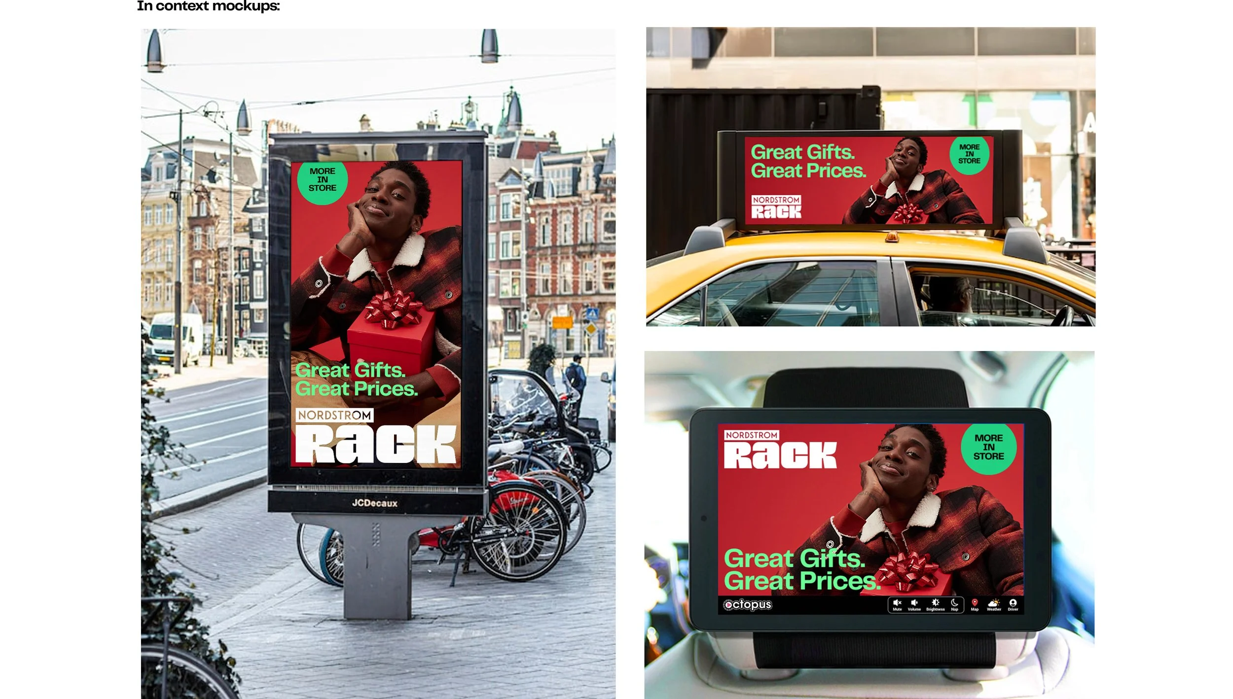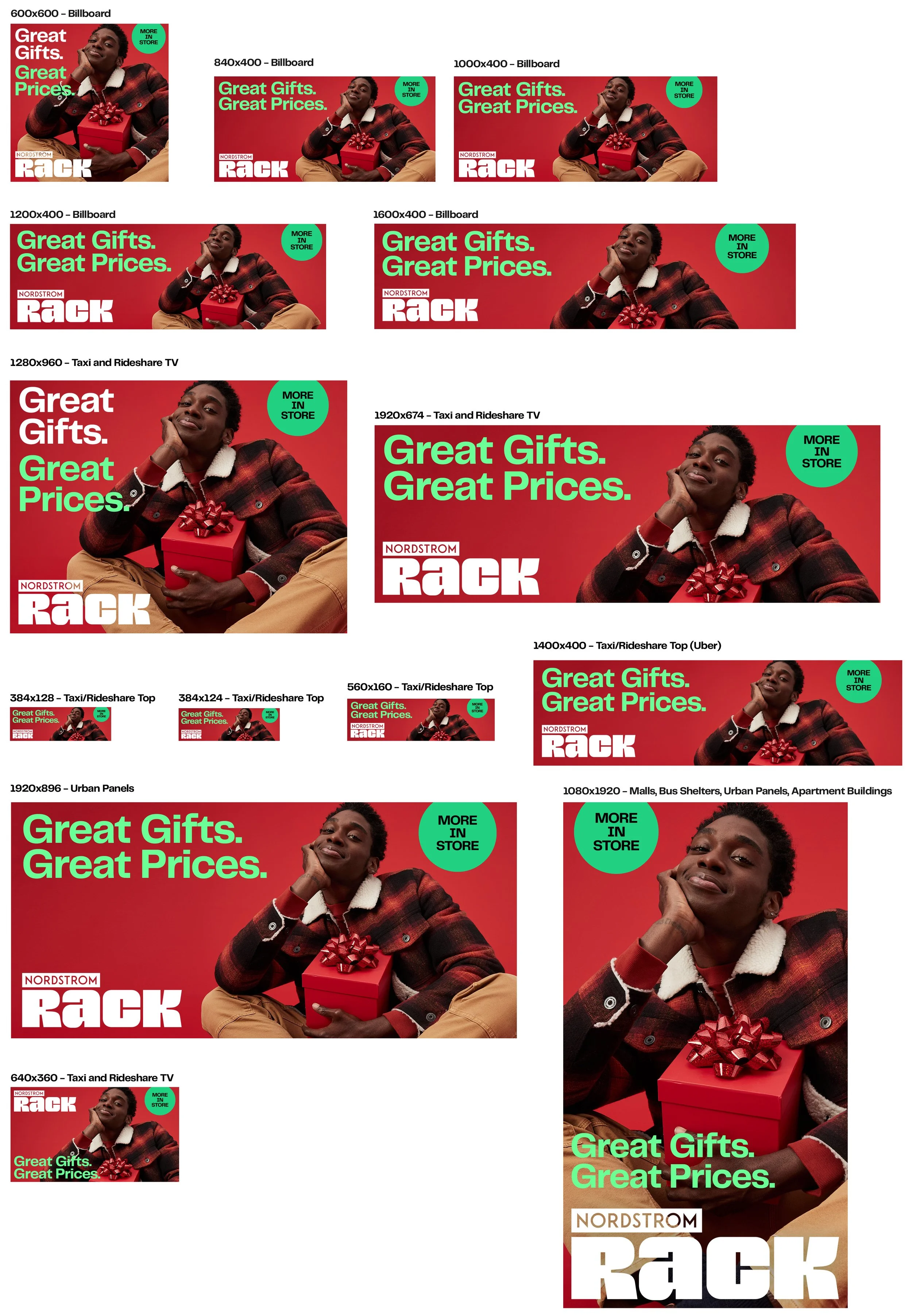 I led the creative development for Nordstrom Rack’s paid media during the holiday season, while also contributing to the campaign’s overall look and feel. Each year I established scalable design systems that enabled fast production of high-volume assets while keeping Rack’s distinct swagger energy front and center.